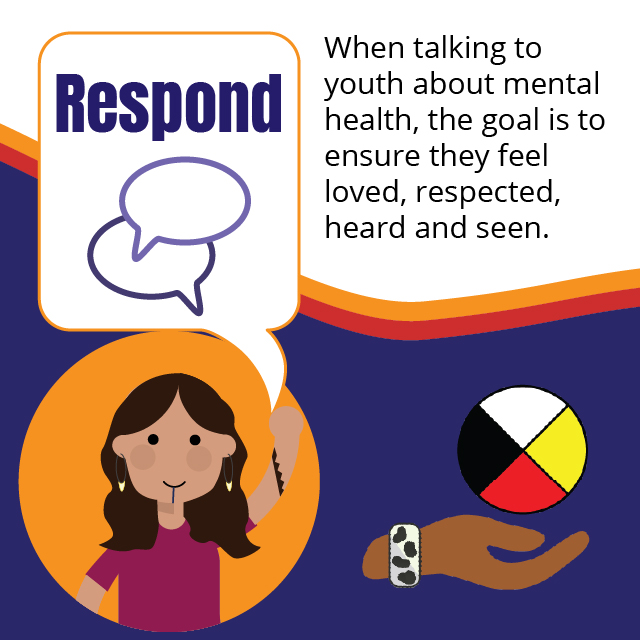 The text message service walks folks through three steps to fill their mental health toolbox: Respond, Heal, Grow. The text messages include skill-building videos and links to help caring adults talk with youth about mental health, share tips for modeling self-care, and connect youth to mental health resources when needed. Throughout the series, folks receive inspirational messages from Indigenous relatives, so they know they’re not alone.